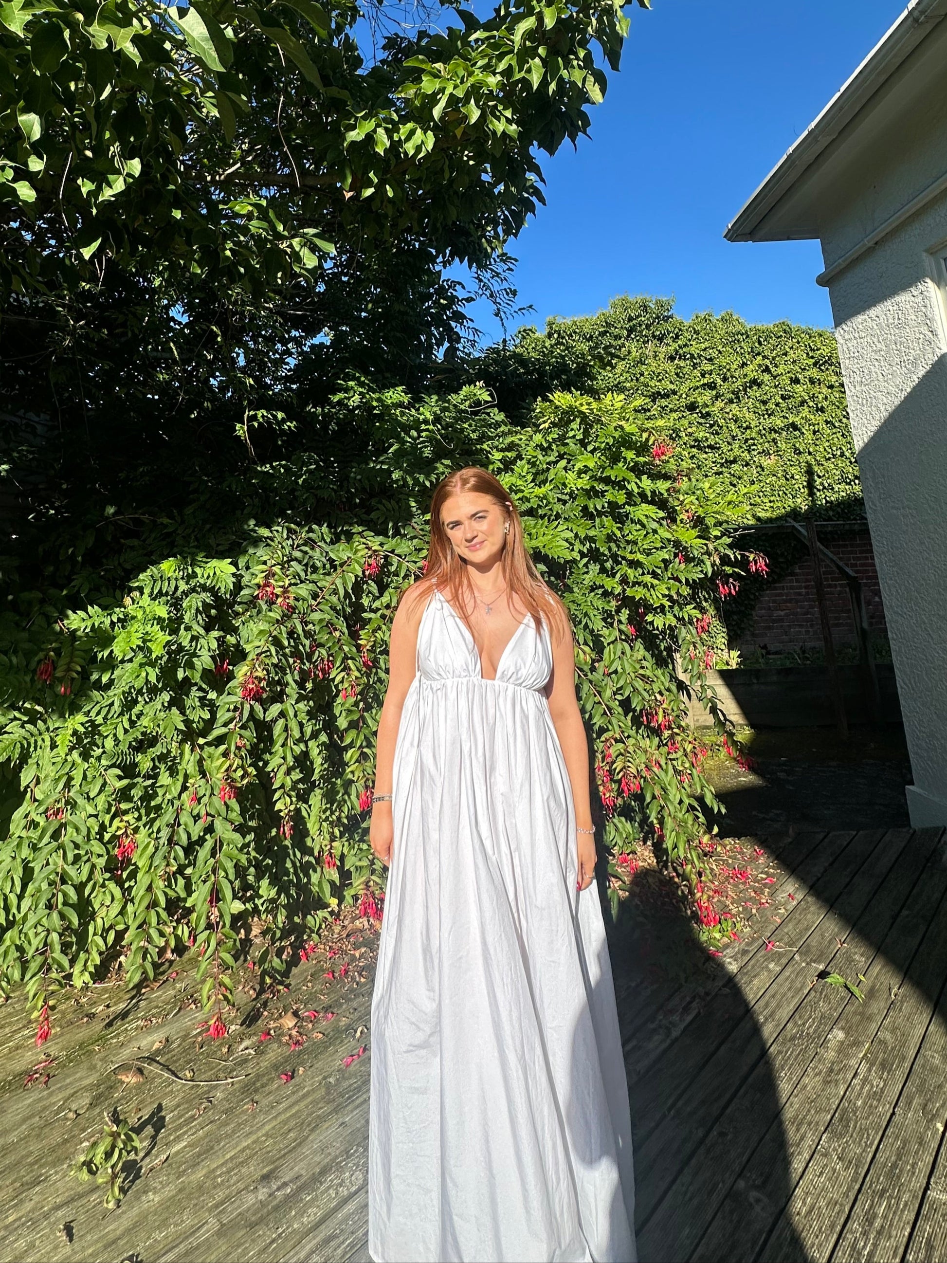 The Esther Dress is a minimalist and chic silhouette that lends itself to both day and evening wear. Featuring a flattering plunge neckline, adjustable shoulder ties and zip closure at the back.